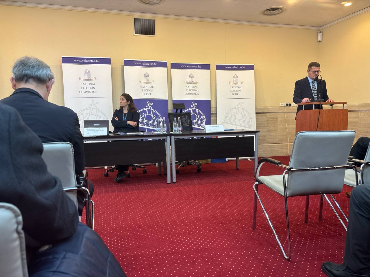 Миллий сайлов бюроси президенти Аттила Надь, шунингдек, Маълумотларни ҳимоя қилиш ва ахборот эркинлиги бўйича миллий идора ҳамда Оммавий ахборот воситалари ва инфокоммуникациялар бўйича миллий идора вакилларининг тақдимотларида сайлов жараёнини маъмурий бошқариш, халқаро кузатувчиларни аккредитация қилиш, сайлов ҳуқуқи ва сайлов жараёни бўйича ахборот тушунтириш ишларини ташкил этиш, сайлов ташкилотчиларини ўқитиш ва сайлов ахборот тизими фаолиятини назорат қилиш масалалари ёритилди.