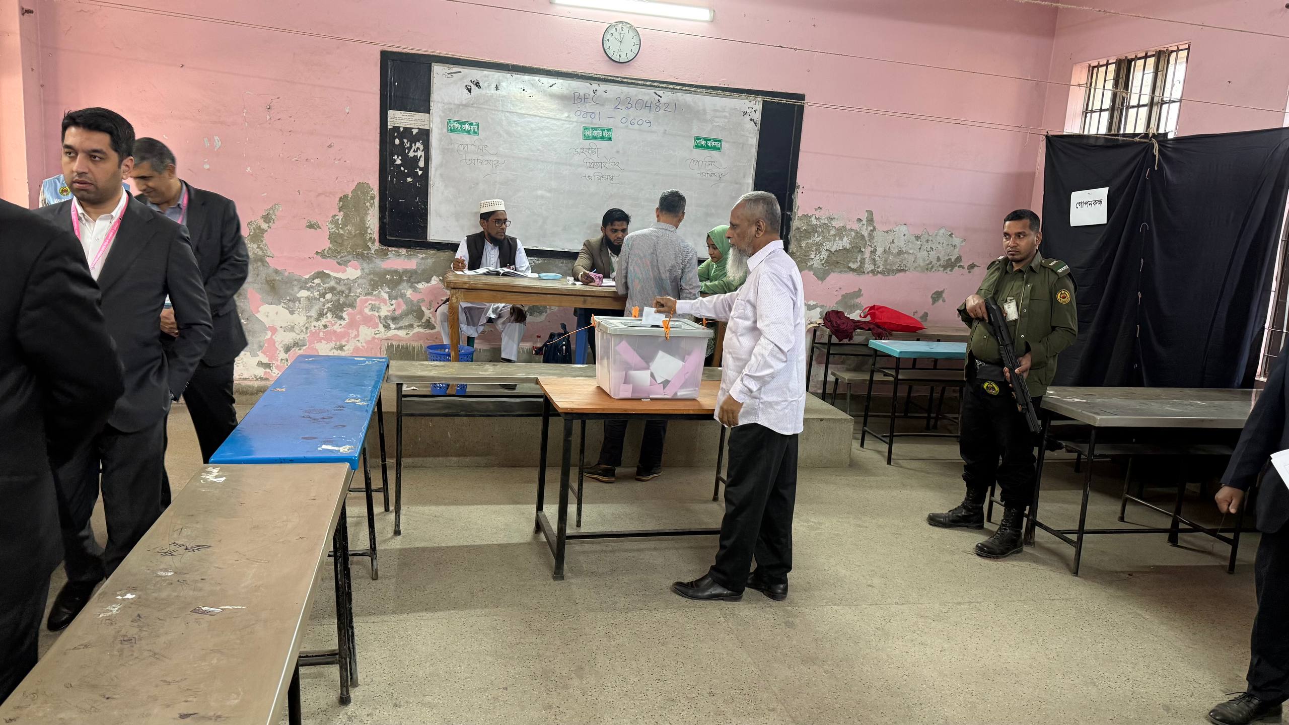 Овоз бериш куни делегация аъзолари Дакка шаҳридаги қатор сайлов участкаларида кузатув олиб бордилар.